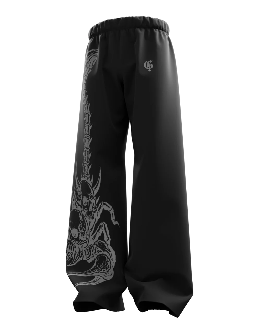 Skullpion Black Unisex Straight Fit Baggy Pants